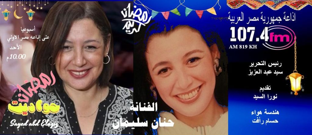 رمضان حواديت وضيفتة الحلقة الاولي الفنانة حنان سليمان والنجم محمد صبحي والمخرج الكبير عمر عبد العزيز والفنانة فادية عبد الغني علي هواء إذاعة البرنامج العام