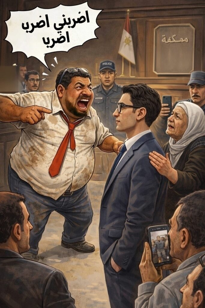 I turned slowly. The voice was charged with a forced anger, and the face was all too familiar—the husband of the defendant against whom the initial judgment had been issued. He did not stop at the question; instead, he unraveled into a chaotic display before the crowd, hurling insults, stepping closer until his hand landed on my shoulder, shaking it with crude provocation.
